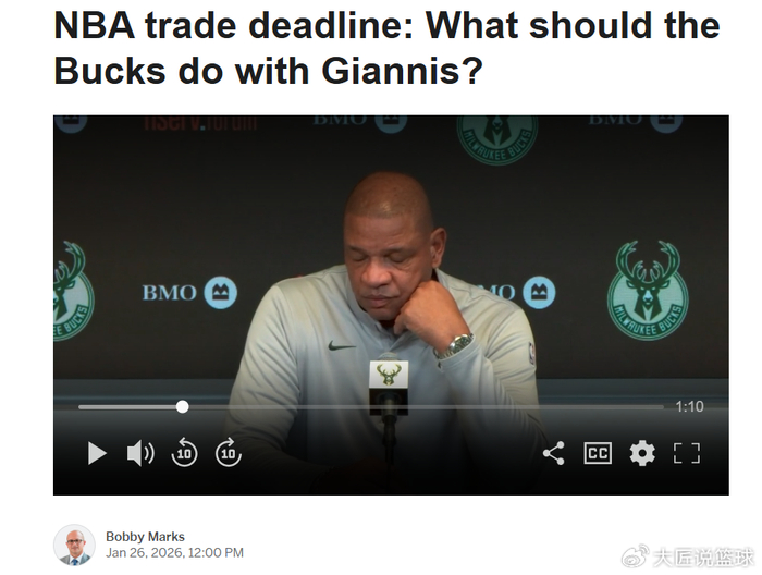 消息来自于美媒《The Stein Line》名记Jake Fischer对于字母哥潜在价值的长文分析。